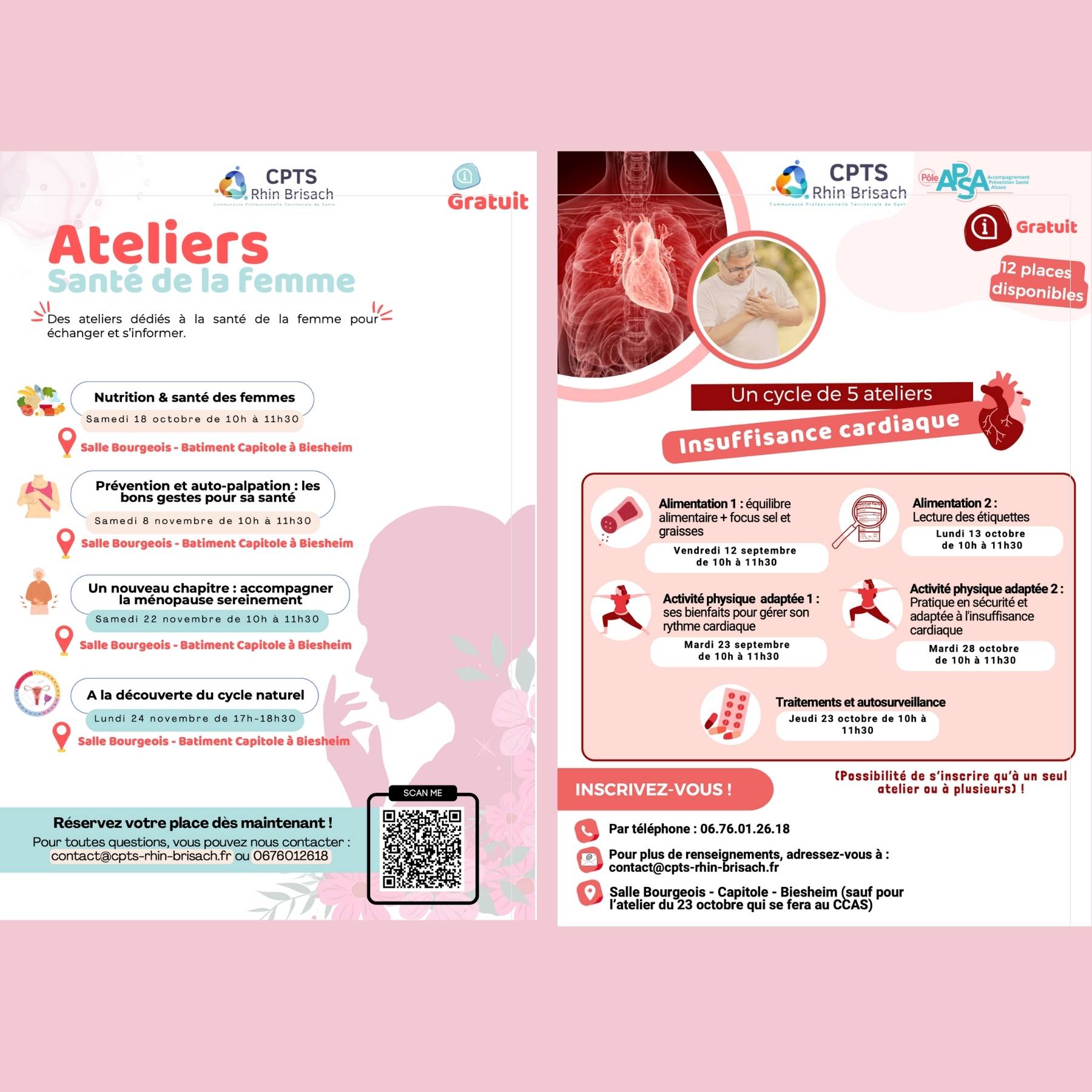 La Communauté Professionnelle Territoriale de Santé (CPTS) du Rhin Brisach organise prochainement deux cycles d’ateliers gratuits et ouverts au tout public, autour de la santé des femmes et de l’accompagnement des personnes atteintes d’insuffisance cardiaque.
