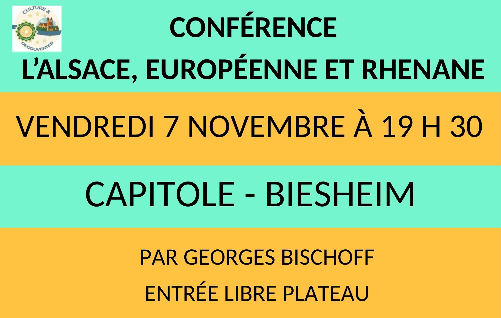 Georges Bischoff, professeur et historien, présentera une conférence intitulée L'Alsace, européenne et rhénane.