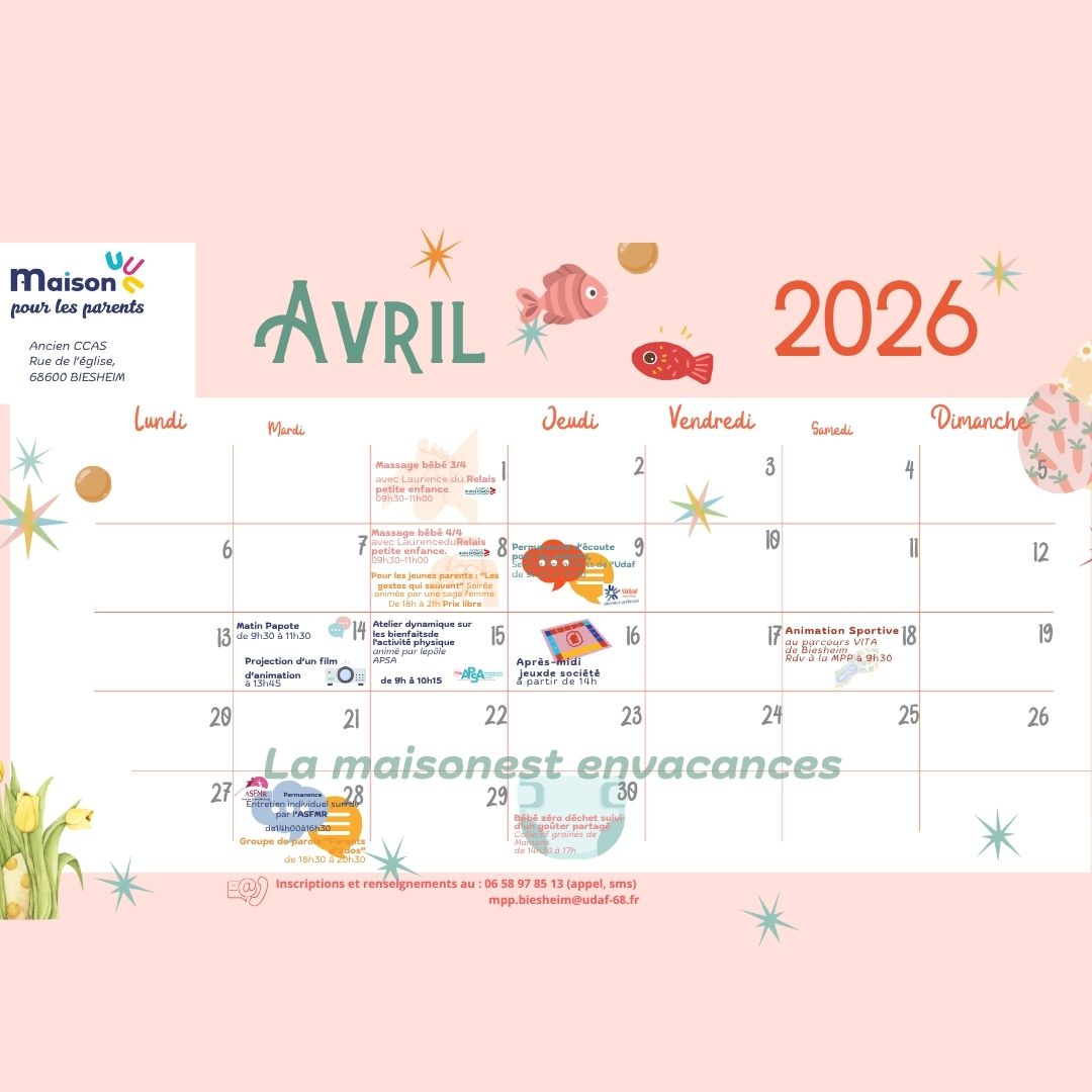 01/04/2026 — Selon les événementsCalendrier de la Maison des Parents