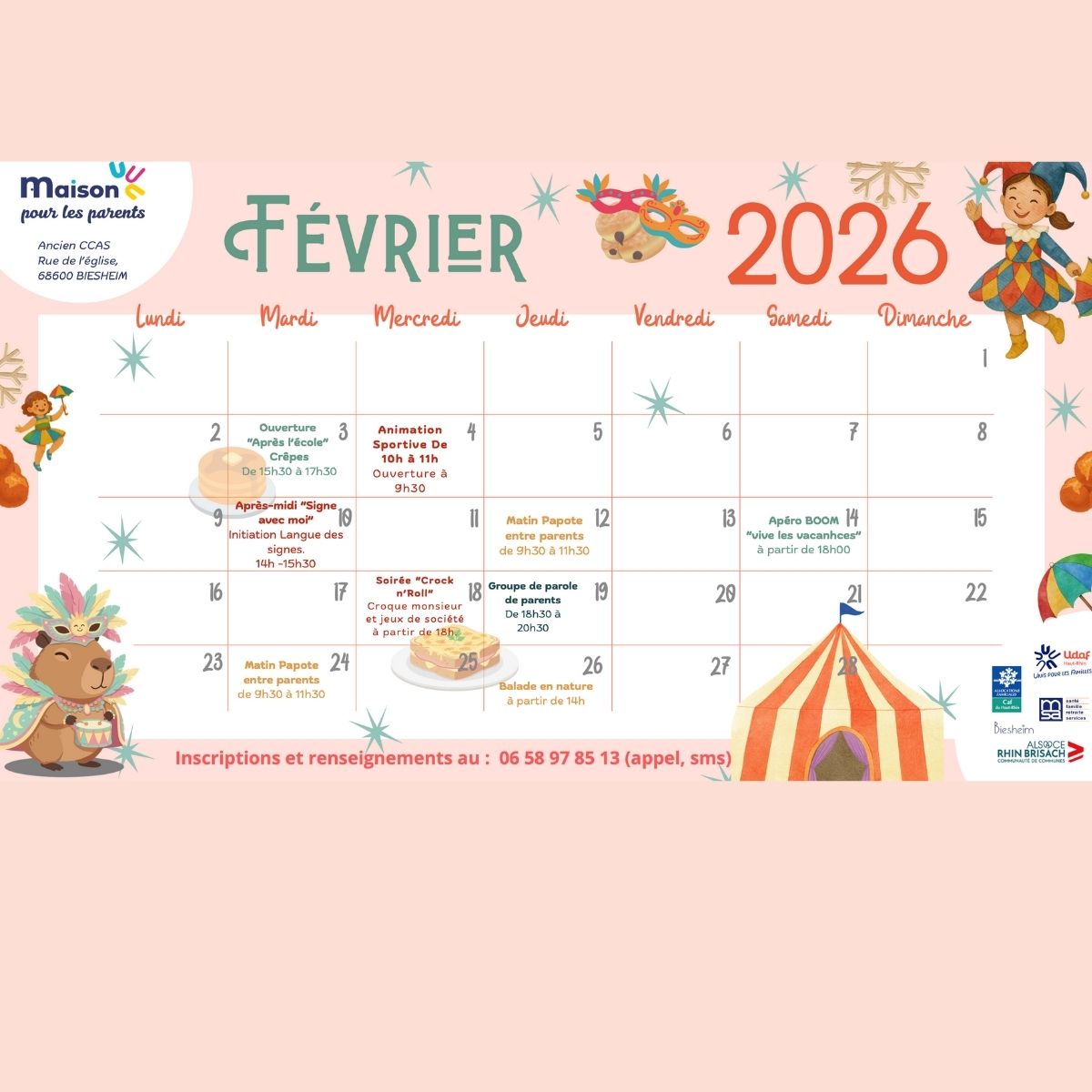 03/02/2026 — Horaires selon les activitésMaison pour les Parents : le programme de février